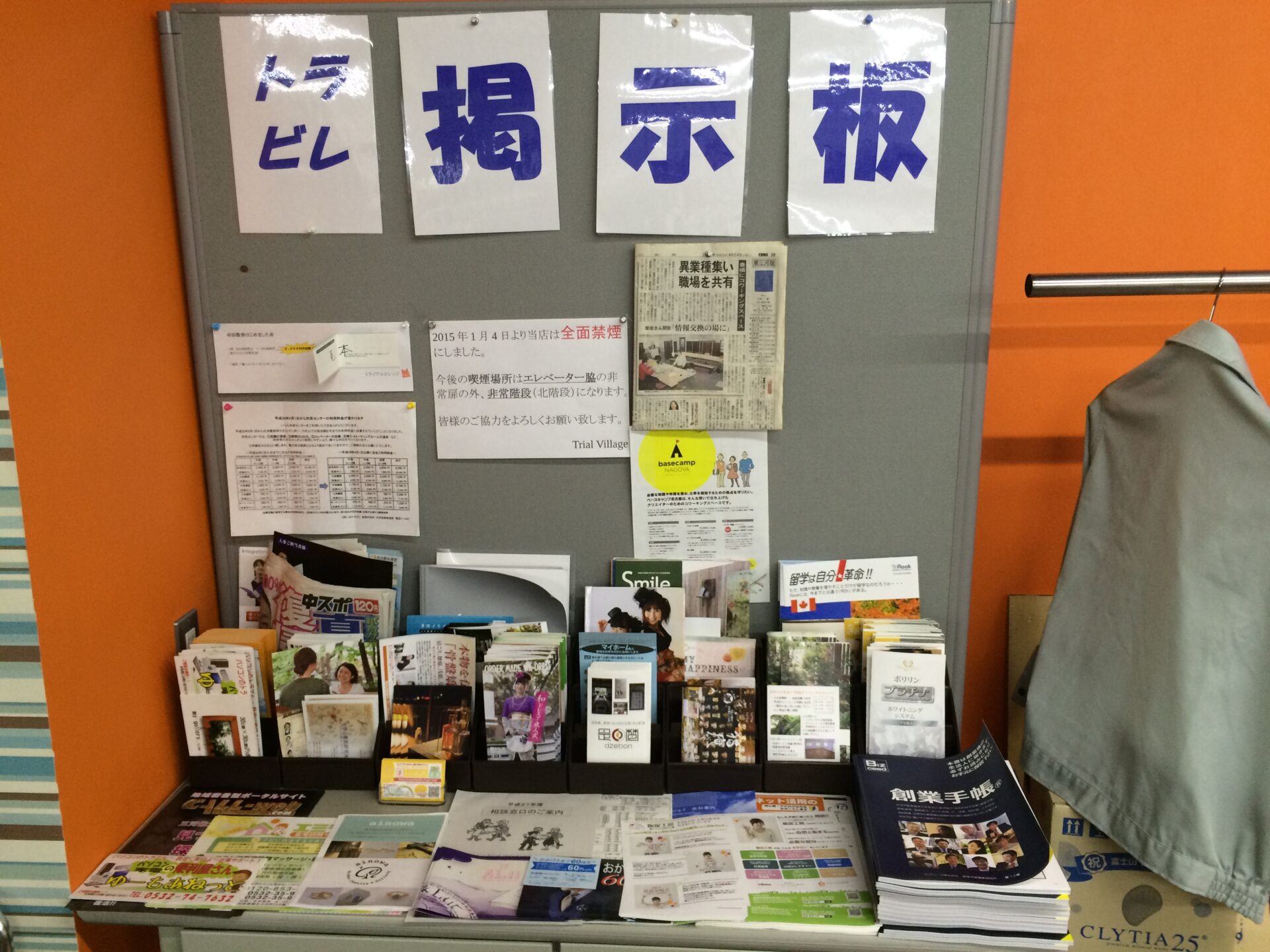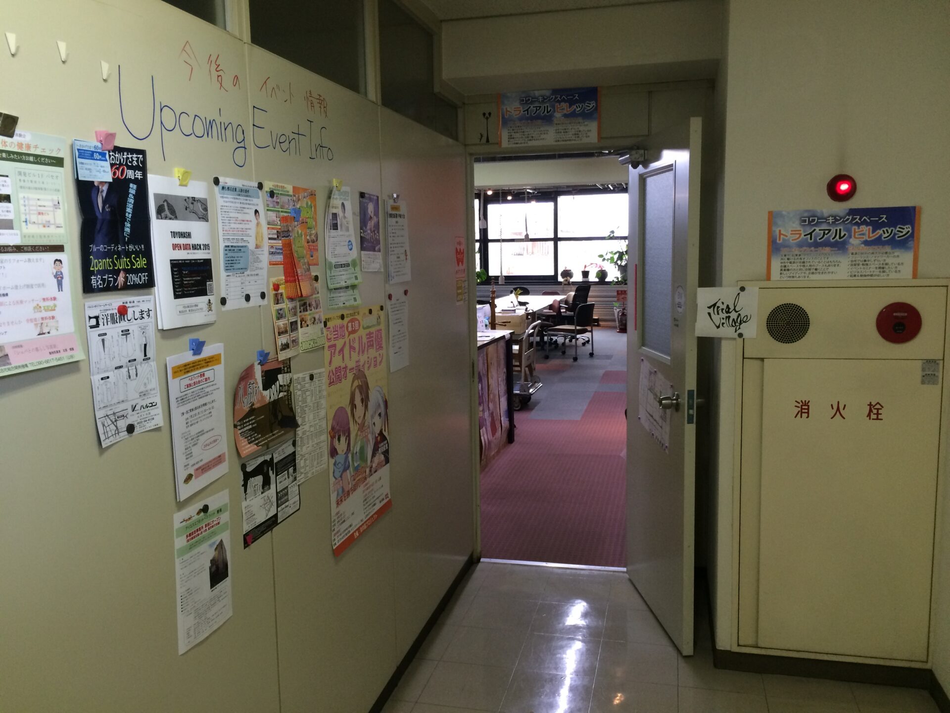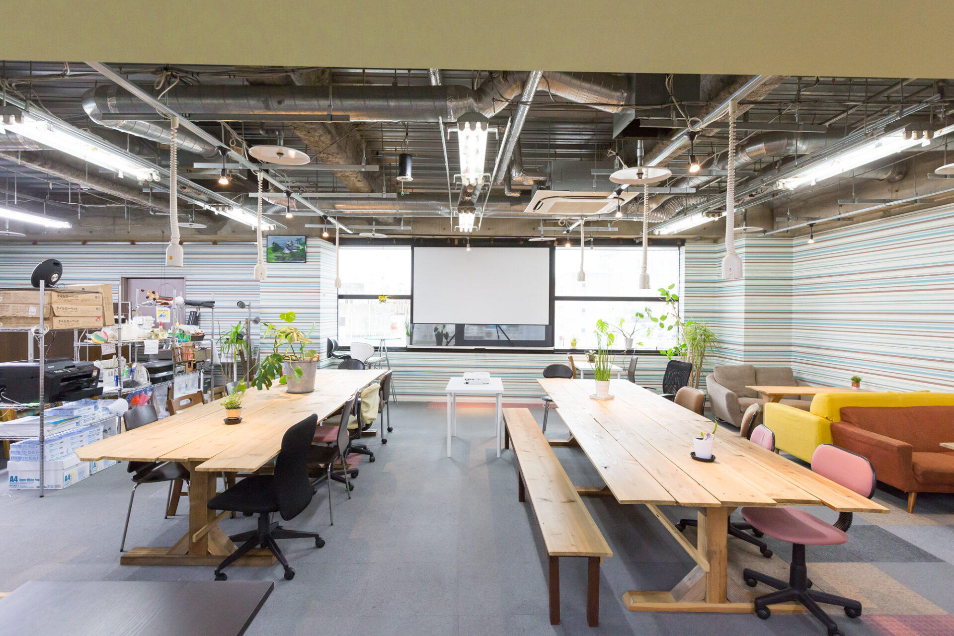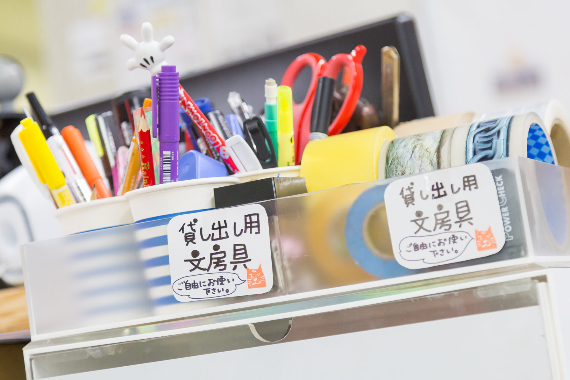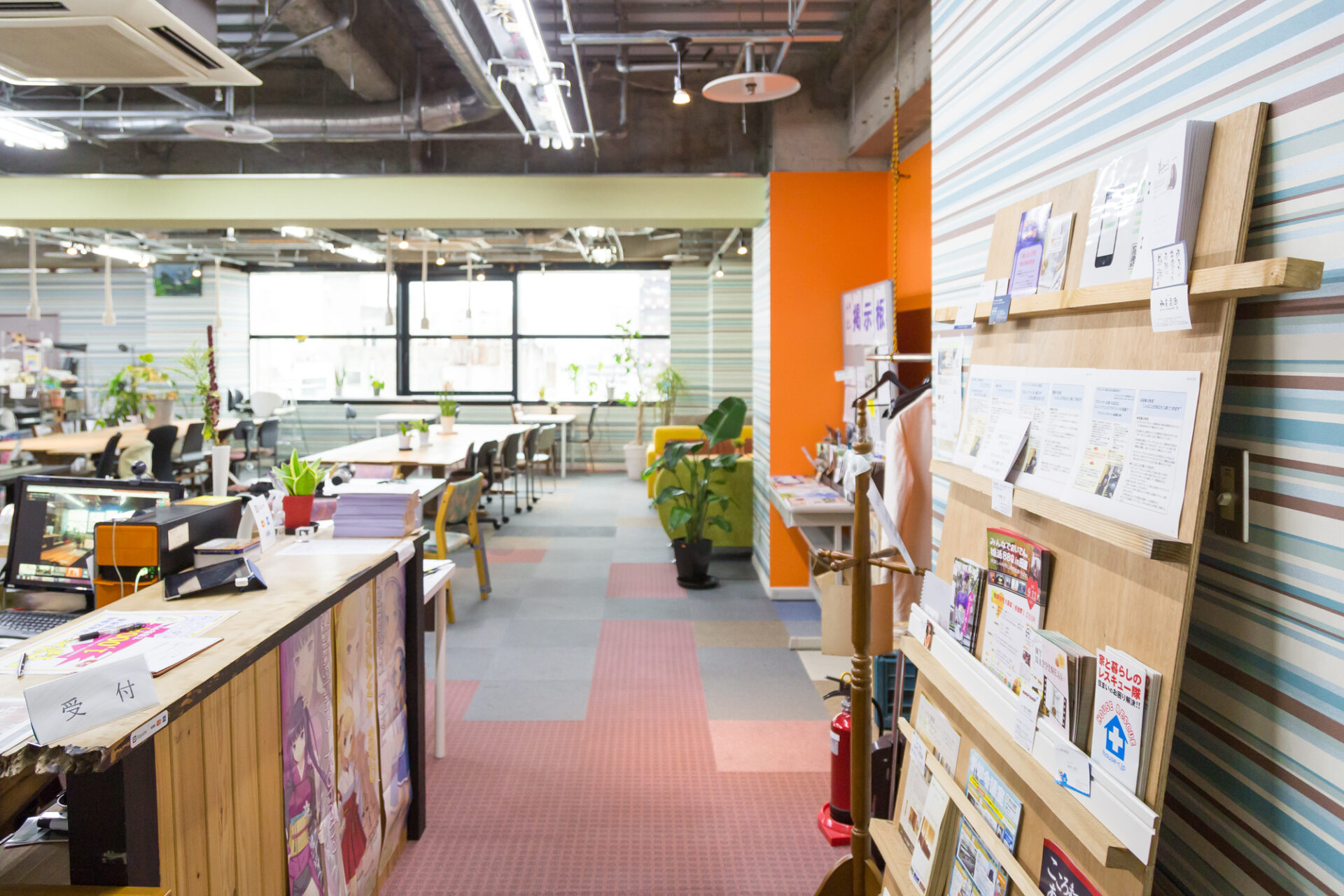 施設案内 文房具 入り口 チラシ置き場 天井からぶら下がるコンセント 共有の本棚 プリンター複合機(インクジェット) 内観1 プロジェクター&スクリーン 会議室 会議室2 ミーティングブース 内観2 内観3 入り口 受付 ソファ席 大机 軽飲食 小会議 ミーティングブース 掲示板 靴箱 ハンガー